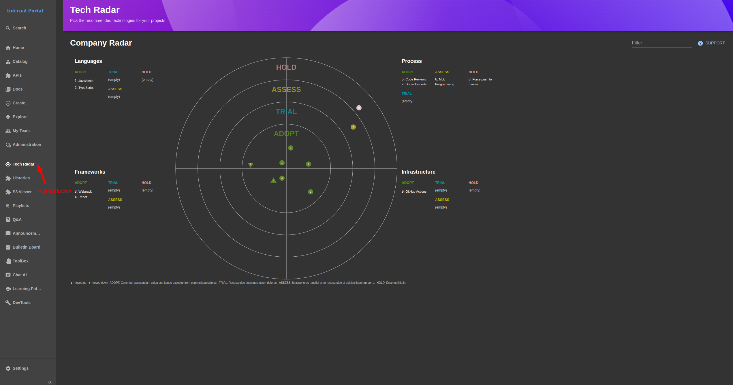 View technical stack radar