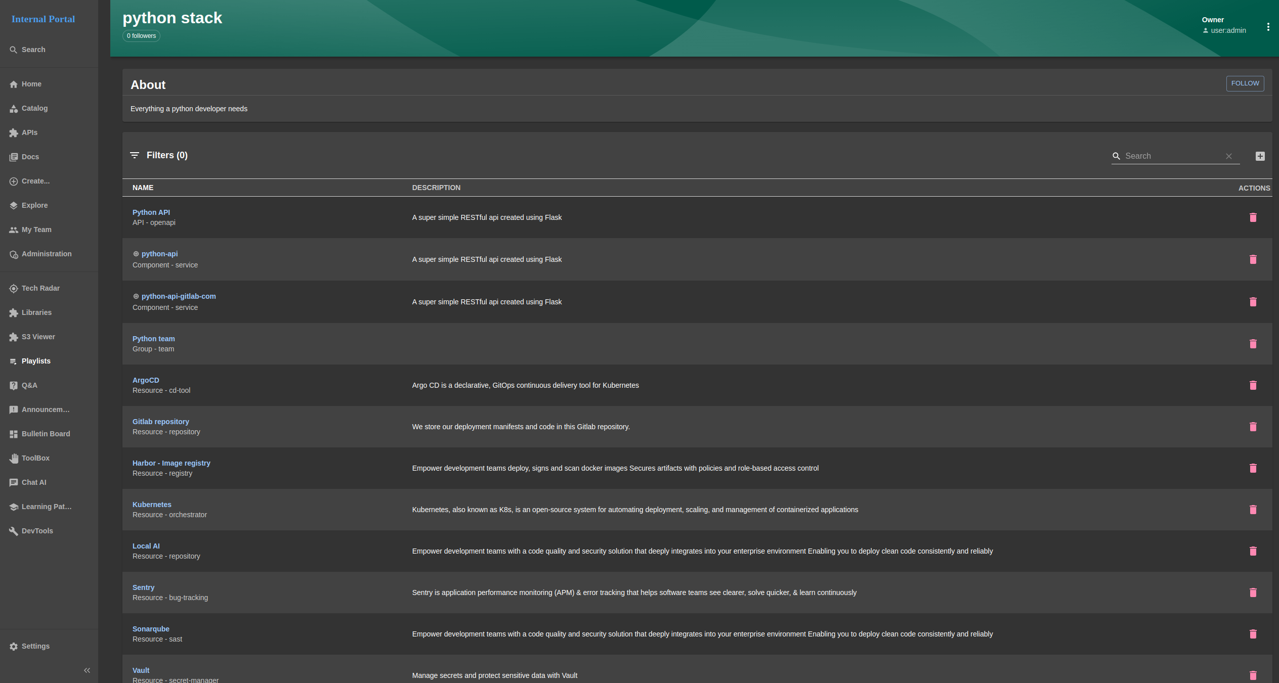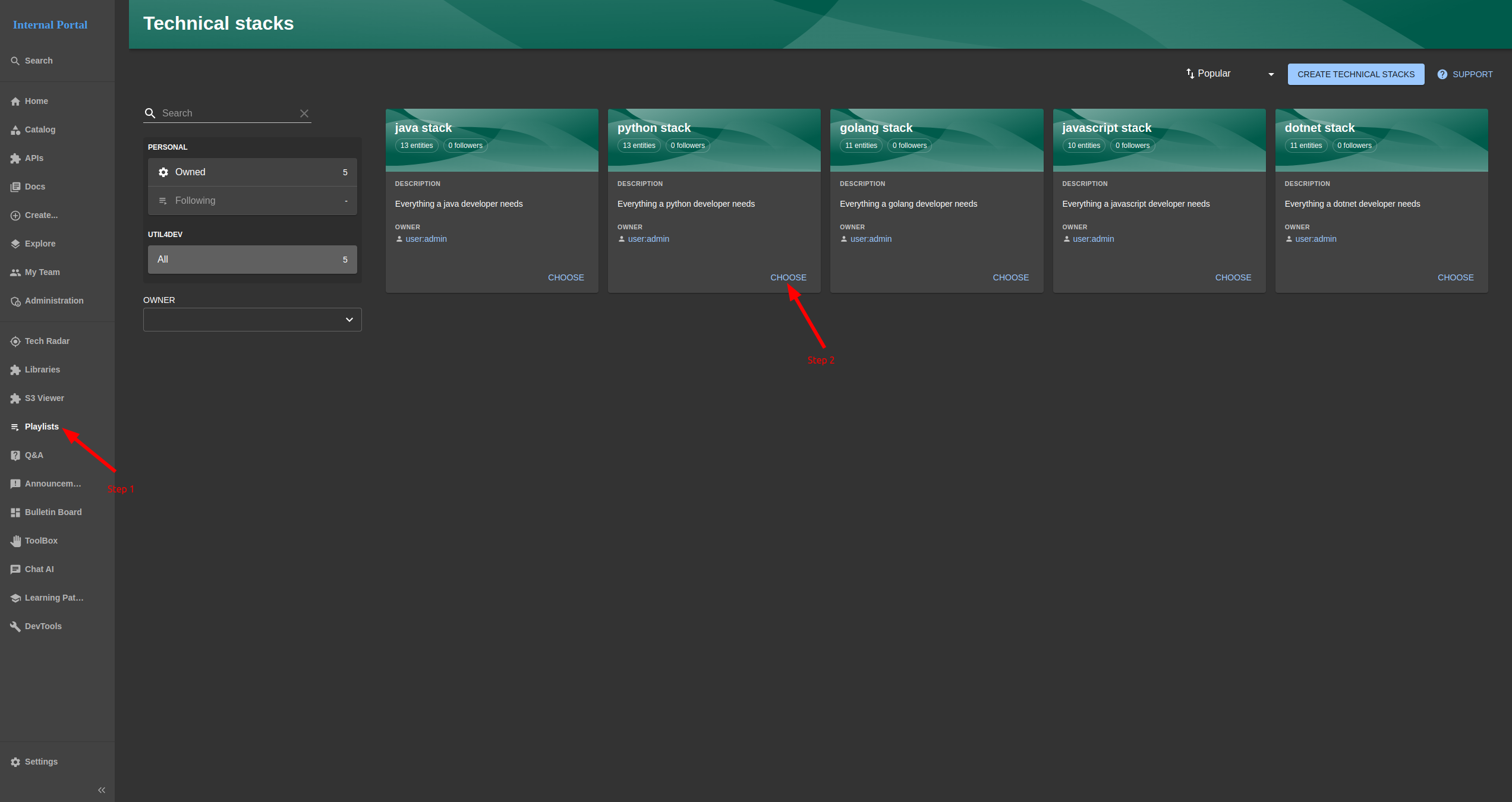 Step 1: click Playlists button to navigate to Technical stacks page